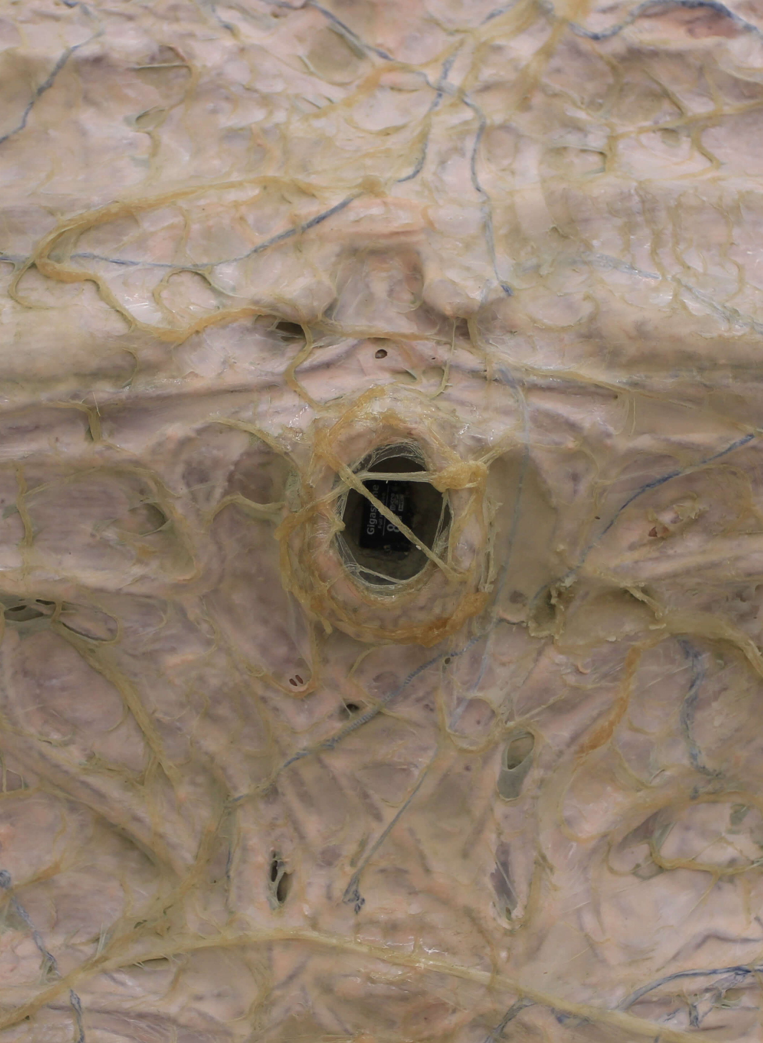 Soy based resin, cosmetic prosthetic latex, french green cosmetic clay, aerosol hairspray, water gilding media (individual serving dehydrated bone broth, french green cosmetic clay, cosmetic kaolin, rabbit skin glue granules, terracotta clay), SD cards (contains archive of World of Warcraft patch 1.7.0 (corrupted blood plague), 1.7.1 (plague fix) and interstitial script), USG drywall filler, automotive filler primer, wax.