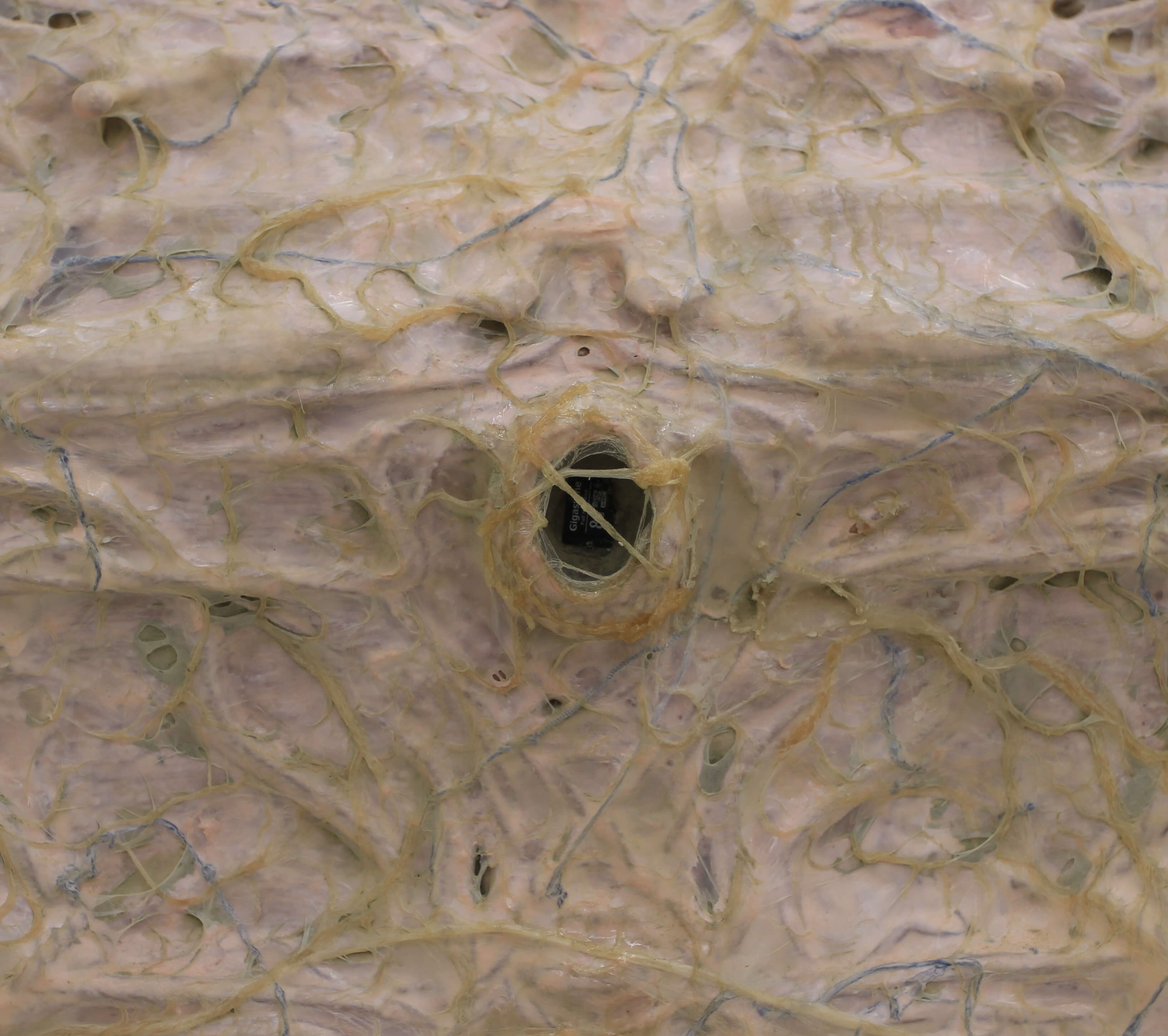 Soy based resin, cosmetic prosthetic latex, french green cosmetic clay, aerosol hairspray, water gilding media (individual serving dehydrated bone broth, french green cosmetic clay, cosmetic kaolin, rabbit skin glue granules, terracotta clay), SD cards (contains archive of World of Warcraft patch 1.7.0 (corrupted blood plague), 1.7.1 (plague fix) and interstitial script), USG drywall filler, automotive filler primer, wax.